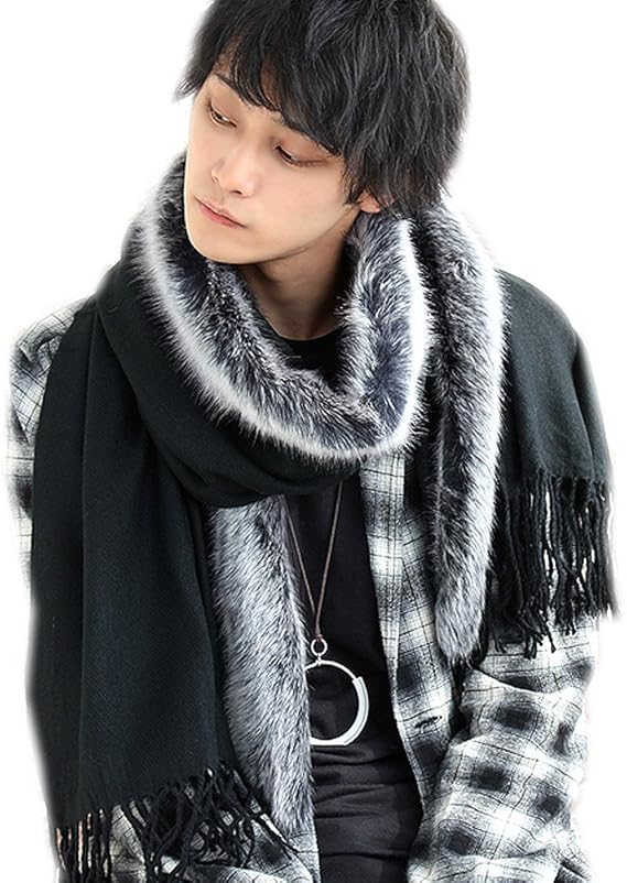 Amazon Co Jp ファー 付き ストール ショール 大判 厚手 メンズ 冬 用 フェイクファー 無地 全10色 A3 防寒 ファッション